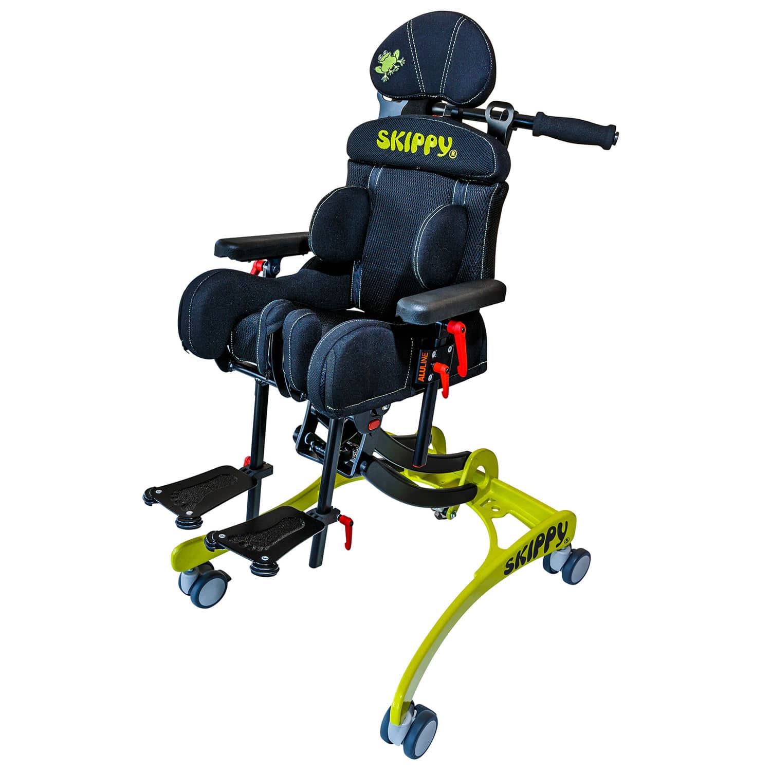 Madita consigue el posicionamiento que cada niño necesita: una posición erguida, controlada y funcional, gracias a su conjunto de asiento individualmente ajustable y a sus múltiples accesorios de control a nivel de tronco, pelvis y piernas. El chasis de la silla Madita nos permitirá ajustar la altura y la basculación del asiento para adaptarnos al trabajo terapéutico y a la vida en casa. Hay otras versiones para niños más mayores y adultos (Madita Maxi), o con otras características extras (Madita Fun que se puede bajar a la altura del suelo).
